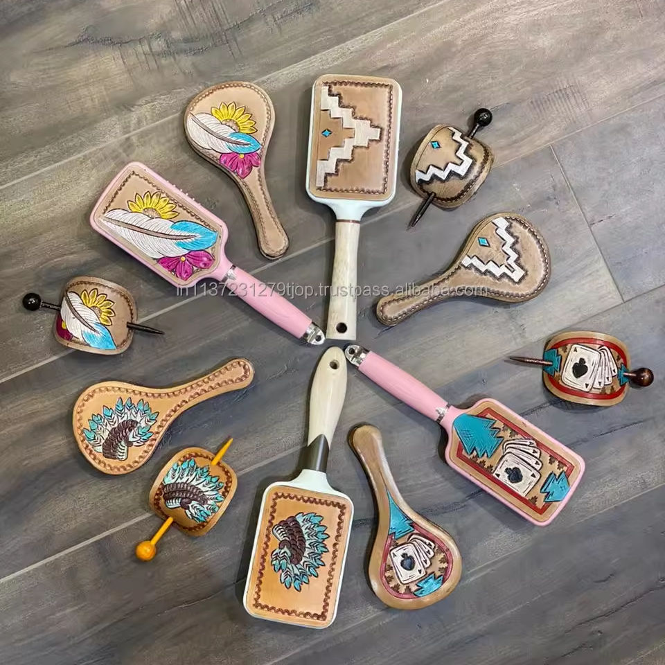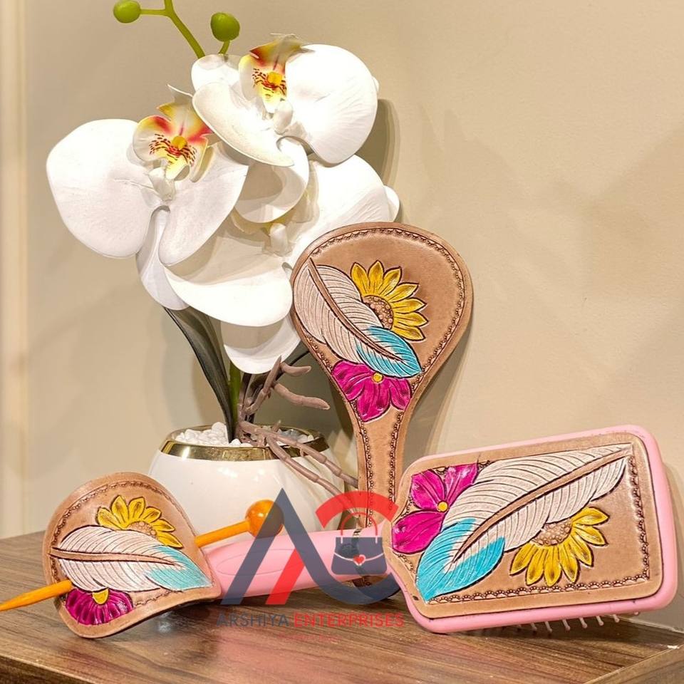 Type:Stylish Engraved Leather 3 Pcs Vanity Hair Sets