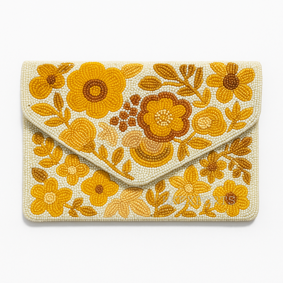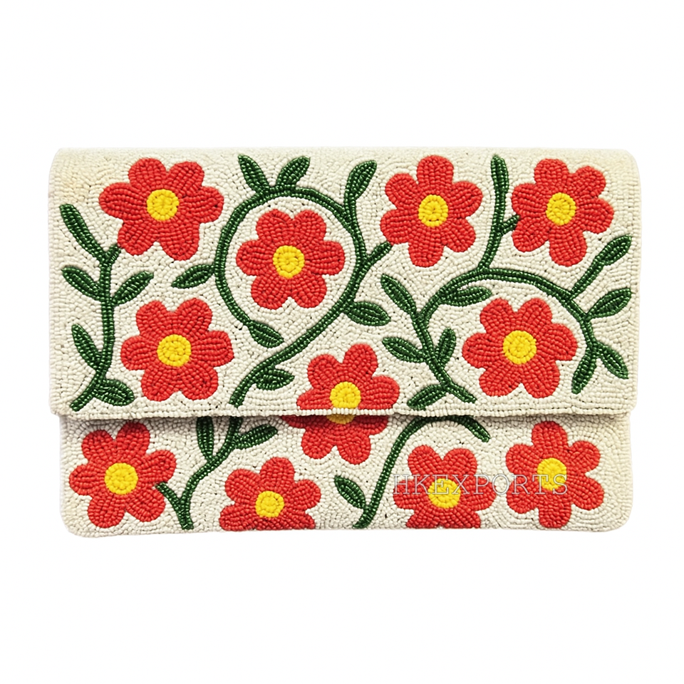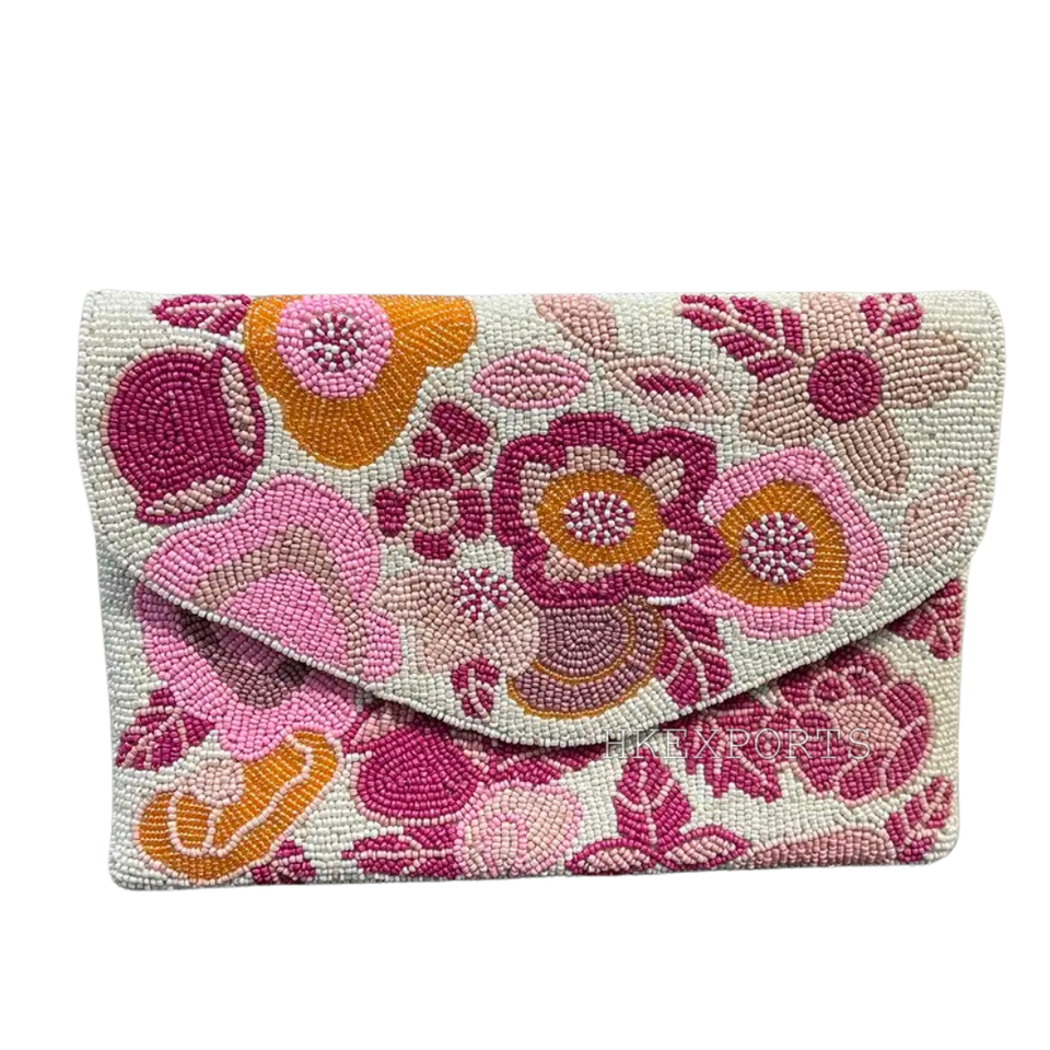 Hot Sale Handmade Beaded Floral Pattern Clutch Purse for Pink Evening Bag with Zipper Closure for Bridal & Party Use