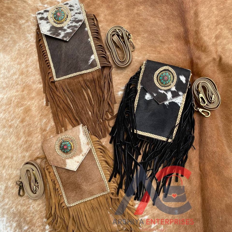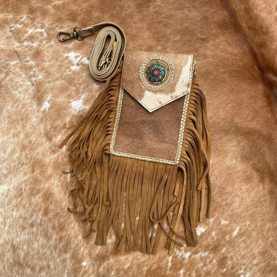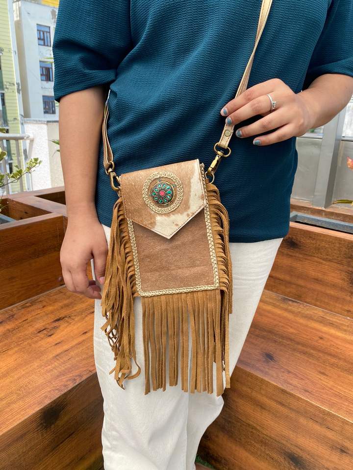 Handmade Cowhide Fringe Crossbody Mobile Bag