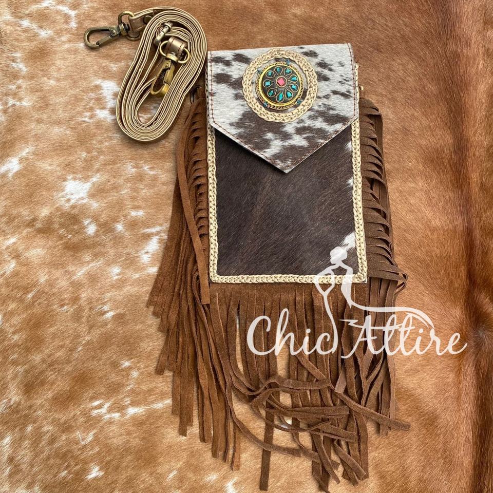 Product name:Handmade Cowhide Fringe Crossbody Mobile Bag