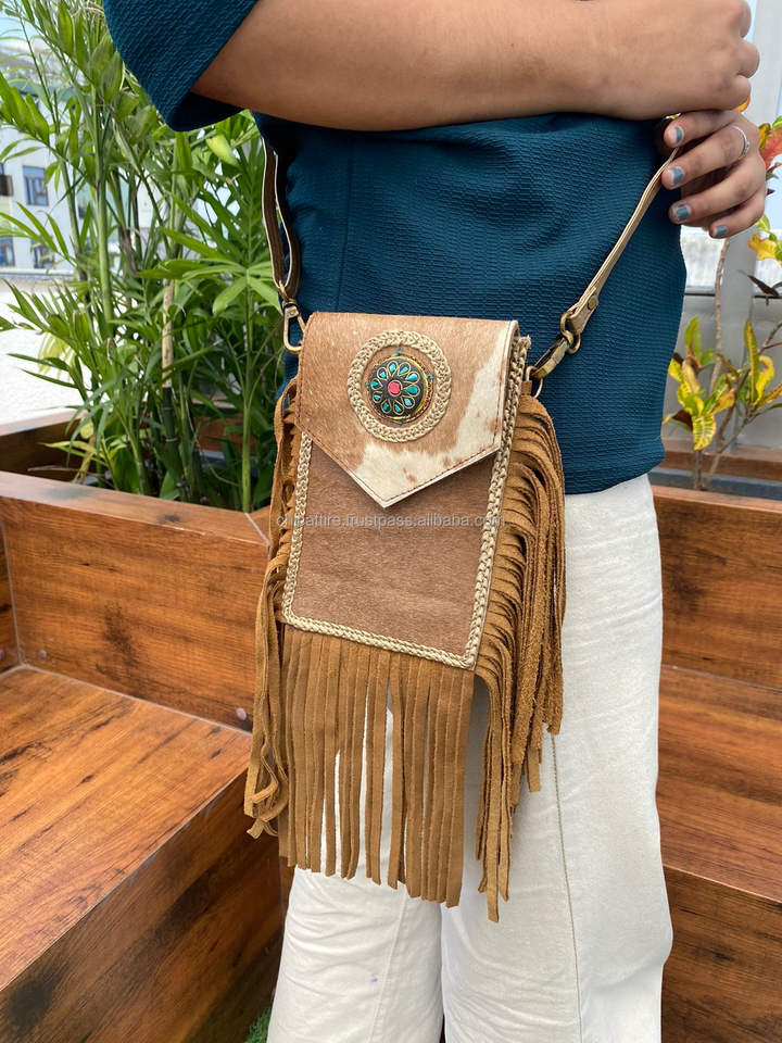 Handmade Cowhide Fringe Crossbody Mobile Bag
