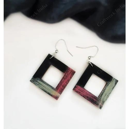 Hot Sale Handmade Square Shaped Wooden Earring Stylish Fashion Jewellery for Ladies Daily and Evening Use At Best Market Price