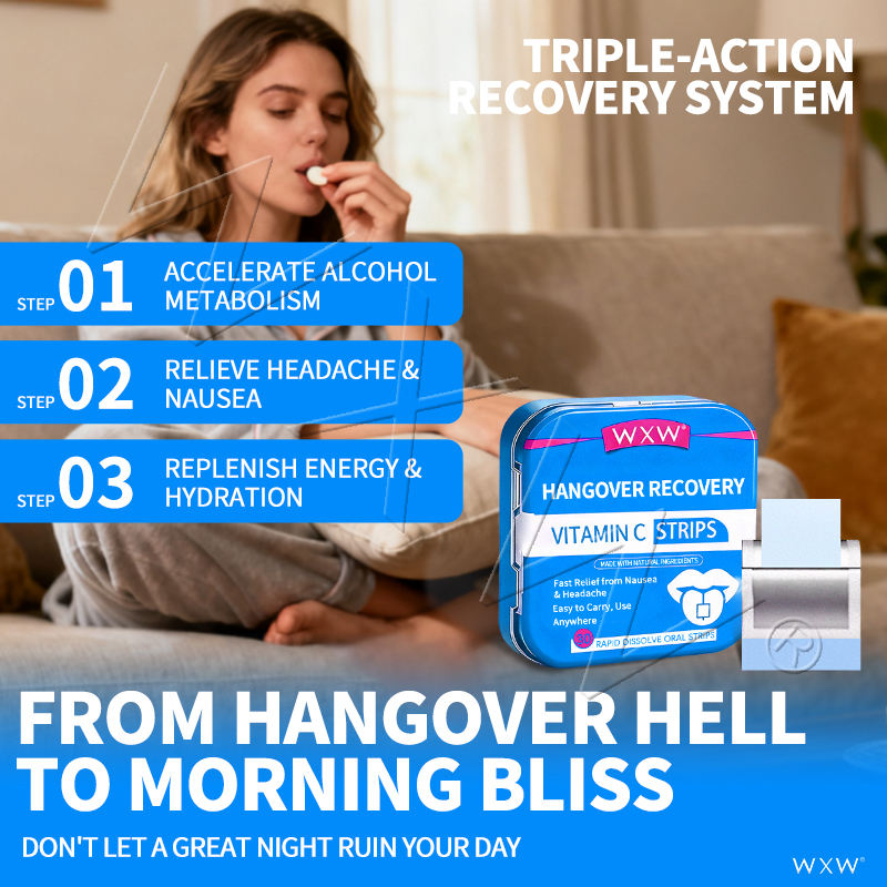 Hot Sale Hangover Recovery Vitamins Oral Strips Milk Thistle Seed & Dandelion Extract Recharge your Energy Vitamin C Strips