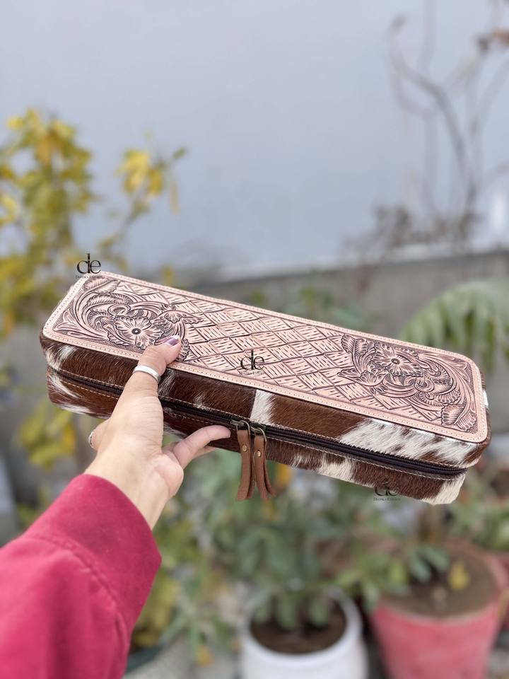 Hot Sale Heat Resistant Hair On Hide Fur Travel Case Hand Tooled Leather Straightener Cases Perfect Organizer for Hair Tools