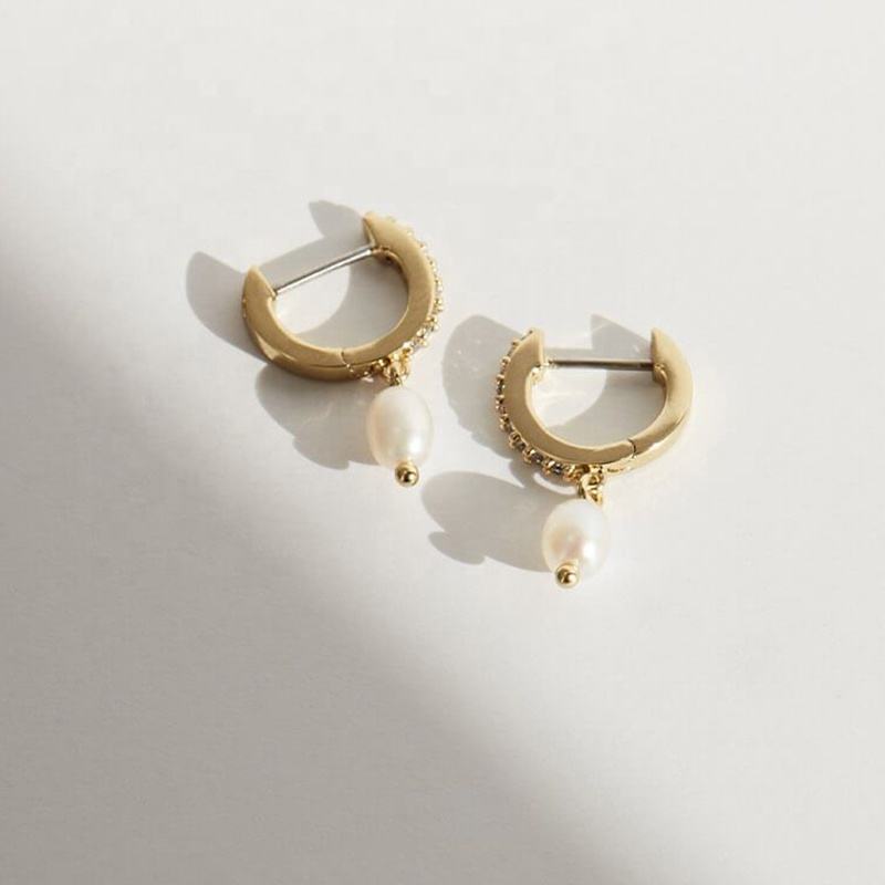 Hot Sale High Quality Fashion Jewelry 18k Plated Gold 925 Sterling Silver Diamond Pearl Drop Earrings