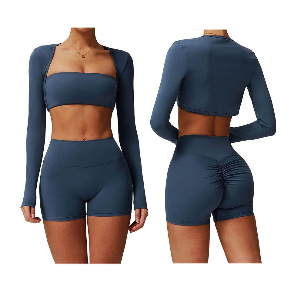 Hot Sale High Quality Sports Bra High Waist Shorts Suit Long Sleeve Workout Wear Gym Sportswear Women Fitness Clothes Yoga Set