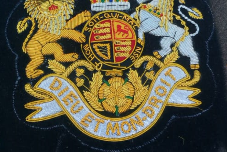 OEM Custom Gold and Black Beaded Badge Highest Quality Handmade Bullion Wire Patch Badges Hot Sale Embroidered Badges