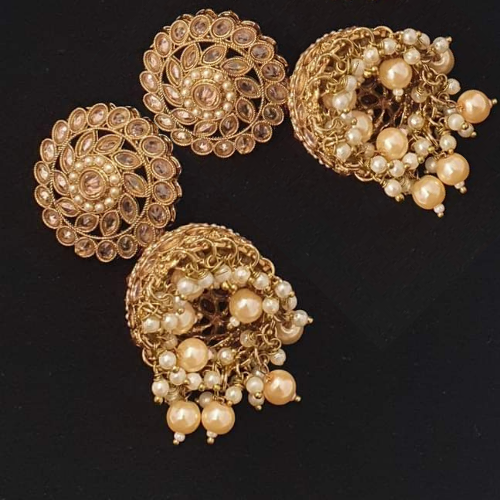 Hot Sale Indian Jhumka Jhumki Earrings Antique Gold Plated Zircon Earrings Women's Jewellery Pearls Earrings Jewelry for Women