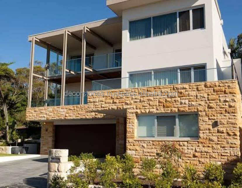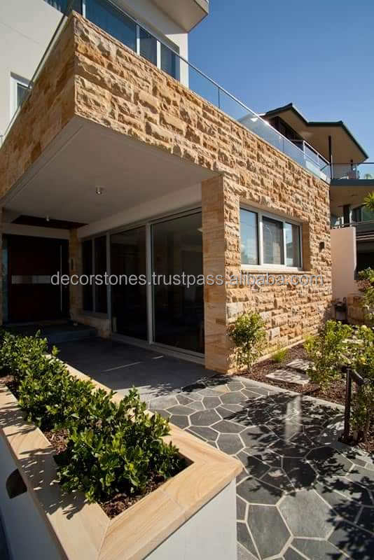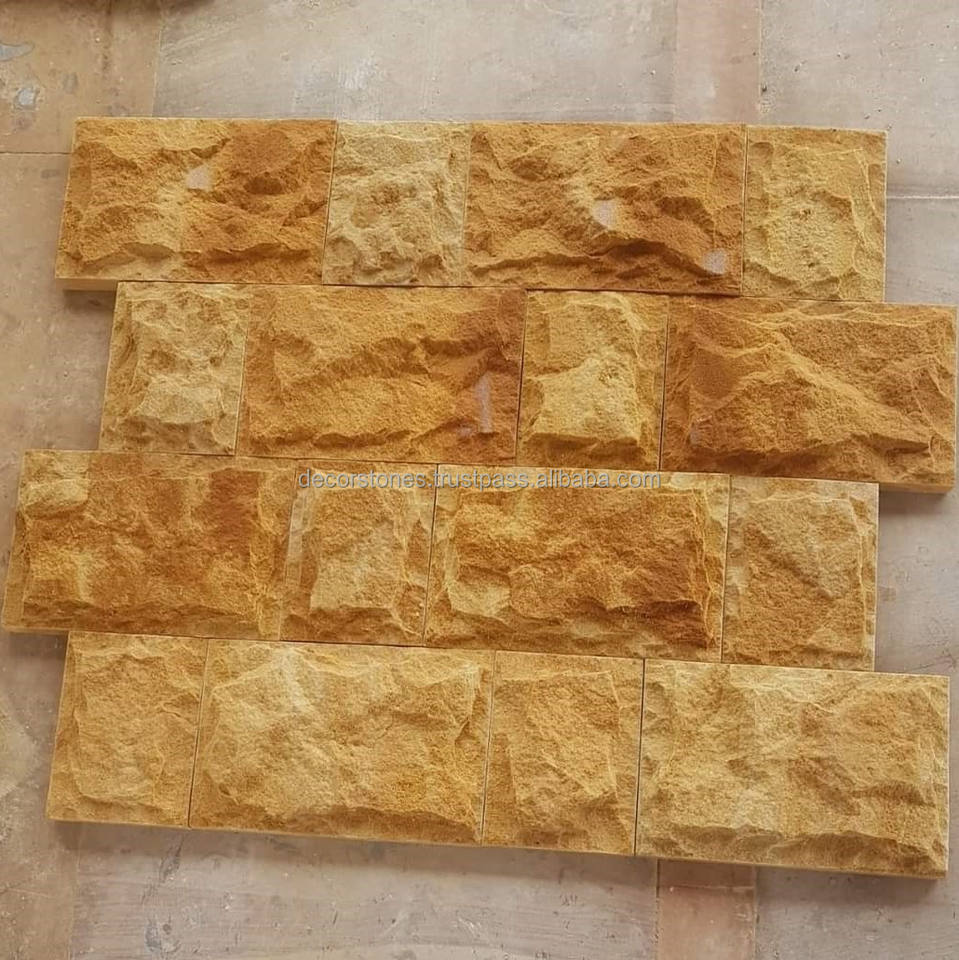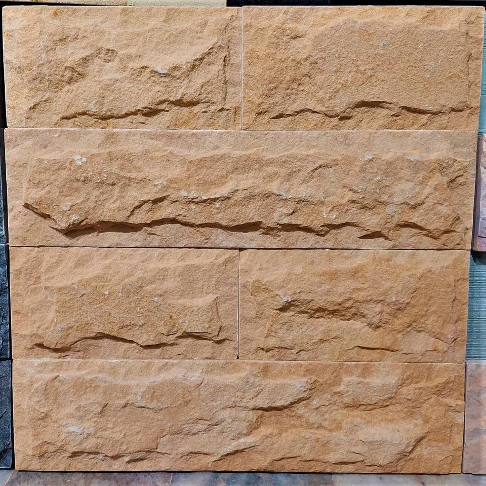 Hot Sale Indian Teakwood Yellow Exterior Honed Rockface Mushroom Decorative Facade Elevation Stone Wall Cladding Natural Split