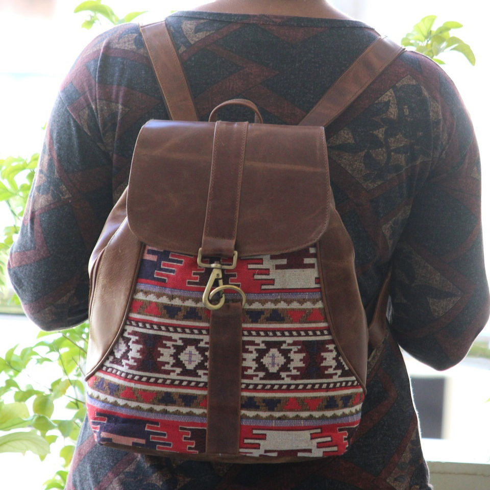 Hot Sale Jacquard Leather Handmade Backpack Real Leather Rucksack Unisex Multi Uses New Design Bag Wholesale Bulk Product