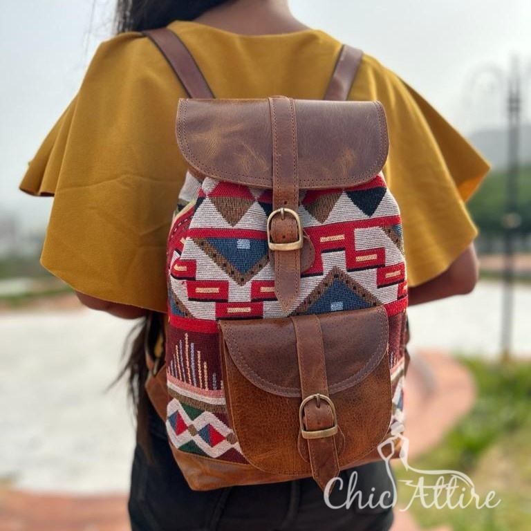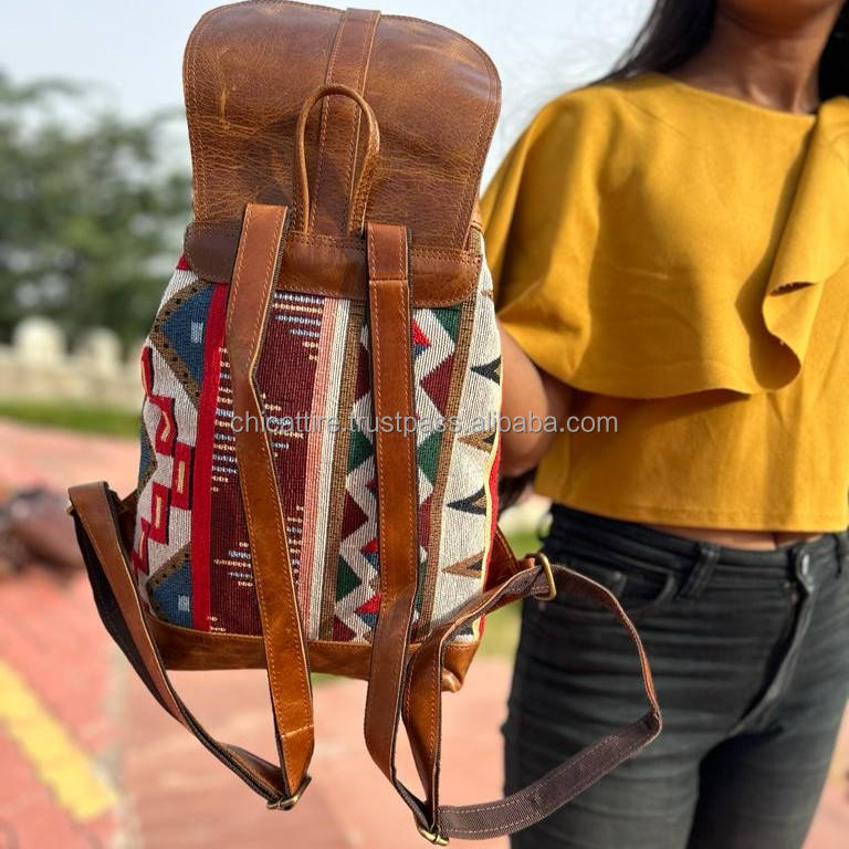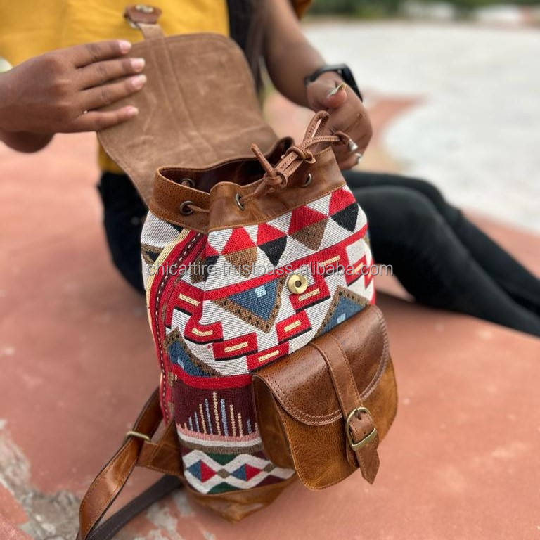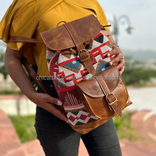 Hot Sale Jacquard Leather Handmade Backpack Real Leather Rucksack Unisex Multi Use New Vintage Design Bag Wholesale Bulk Product