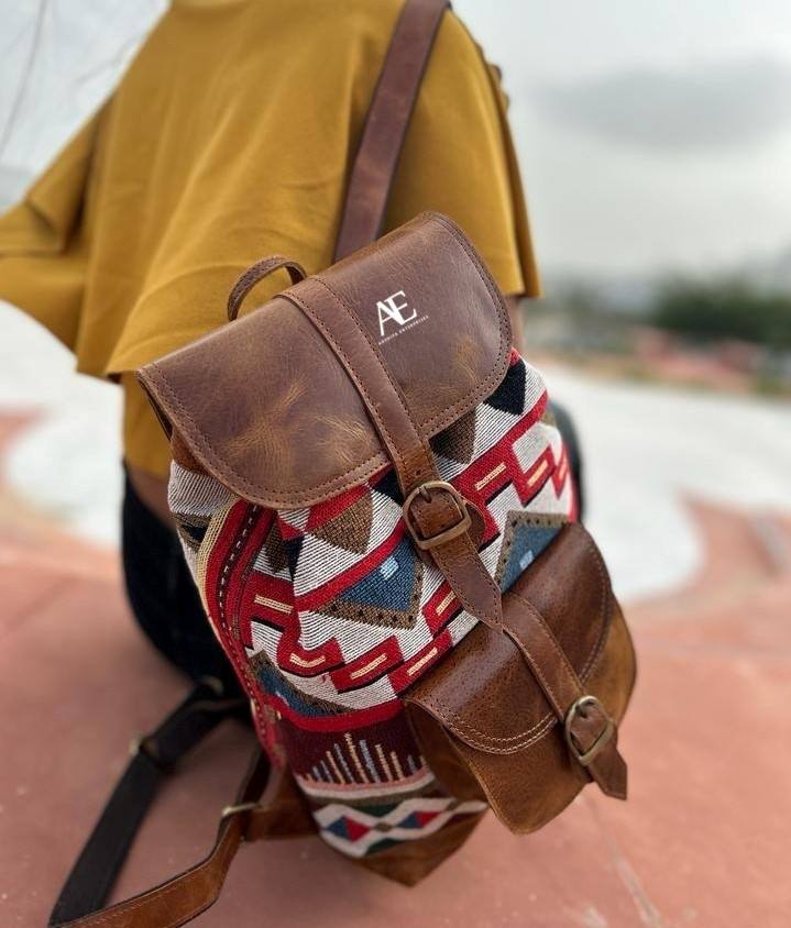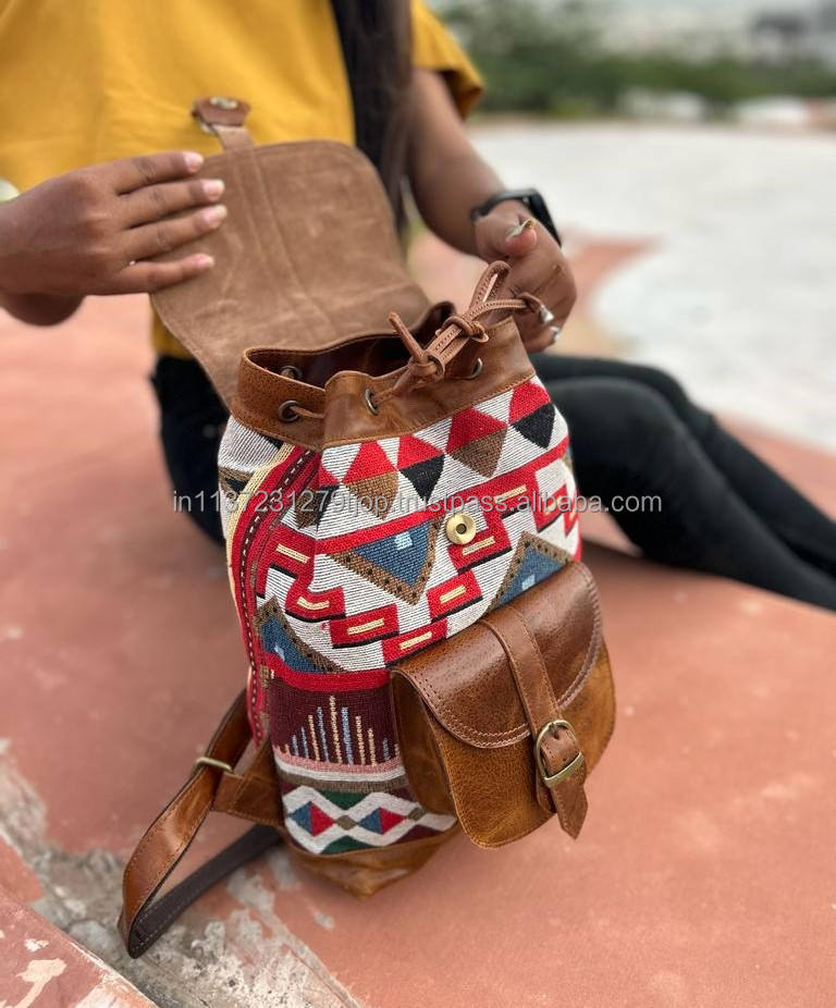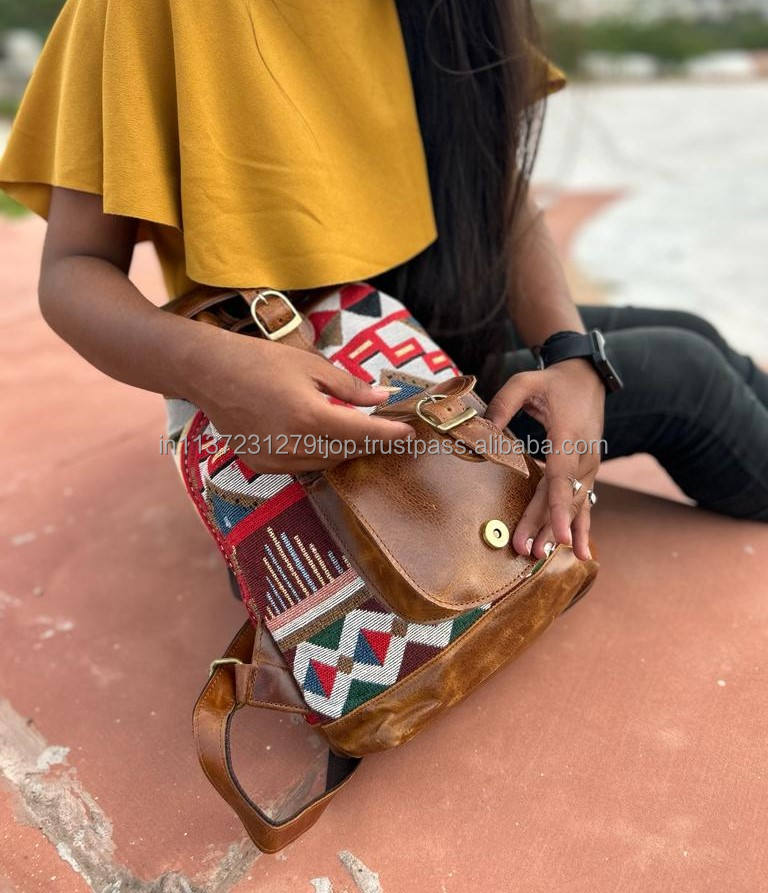 Hot Sale Jacquard Leather Handmade Backpack Real Leather Rucksack Unisex Multi Uses New Design Bag Wholesale Bulk Product