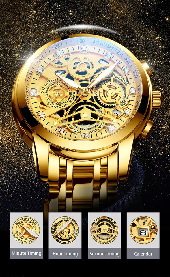 Hot Sale LILUOKE 9012 Men Watch Waterproof Luxury Waterproof Chronograph Luminous Mens Wrist Gold Hollow Out Quartz Clock 2025