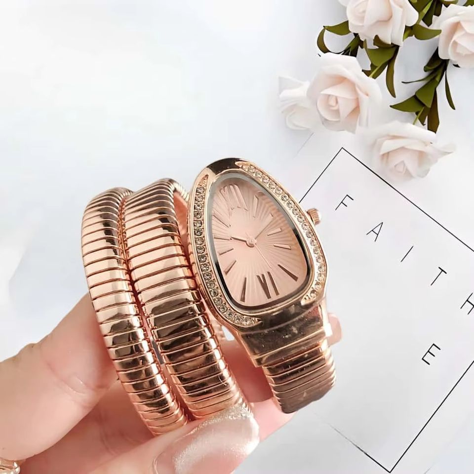 Hot Sale Ladies Gold Plated Snake Strap Watch new classic Oval Face With Rhinestone Trim Fashion Luxury Wristwatch