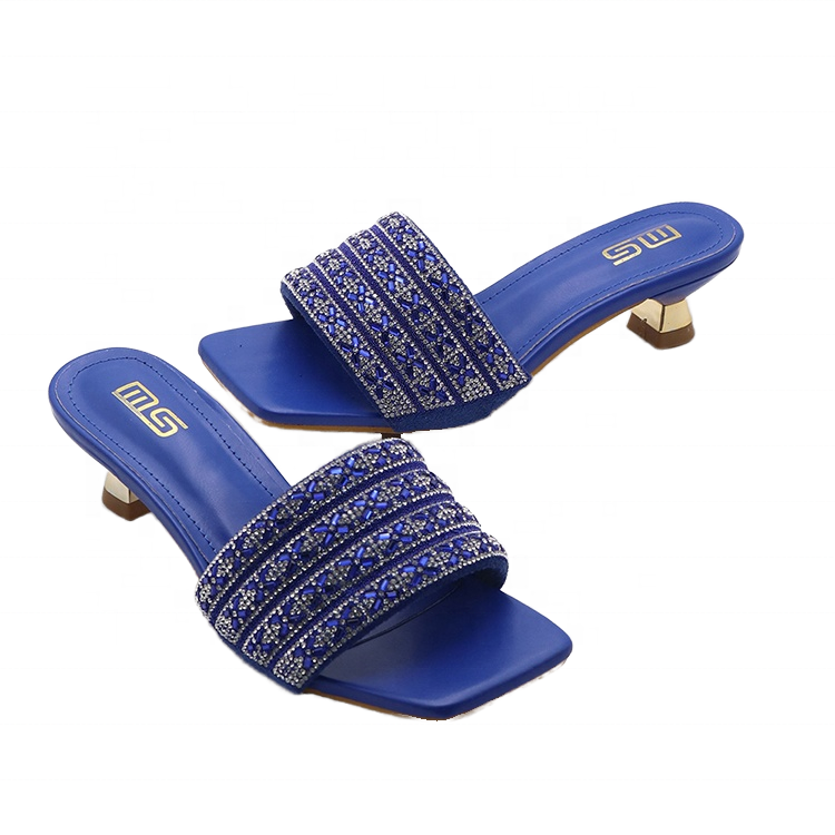 Hot Sale Ladies PU Female Open Toe Flip-Flops Square Heeled Sandals in Black White Blue with 4cm Low Cat Heels Shoes