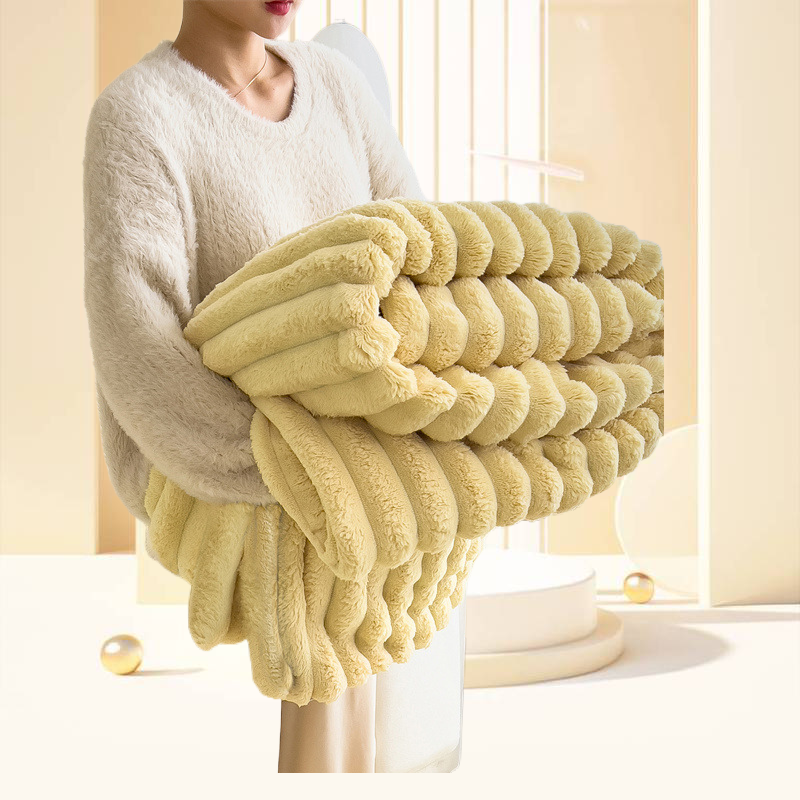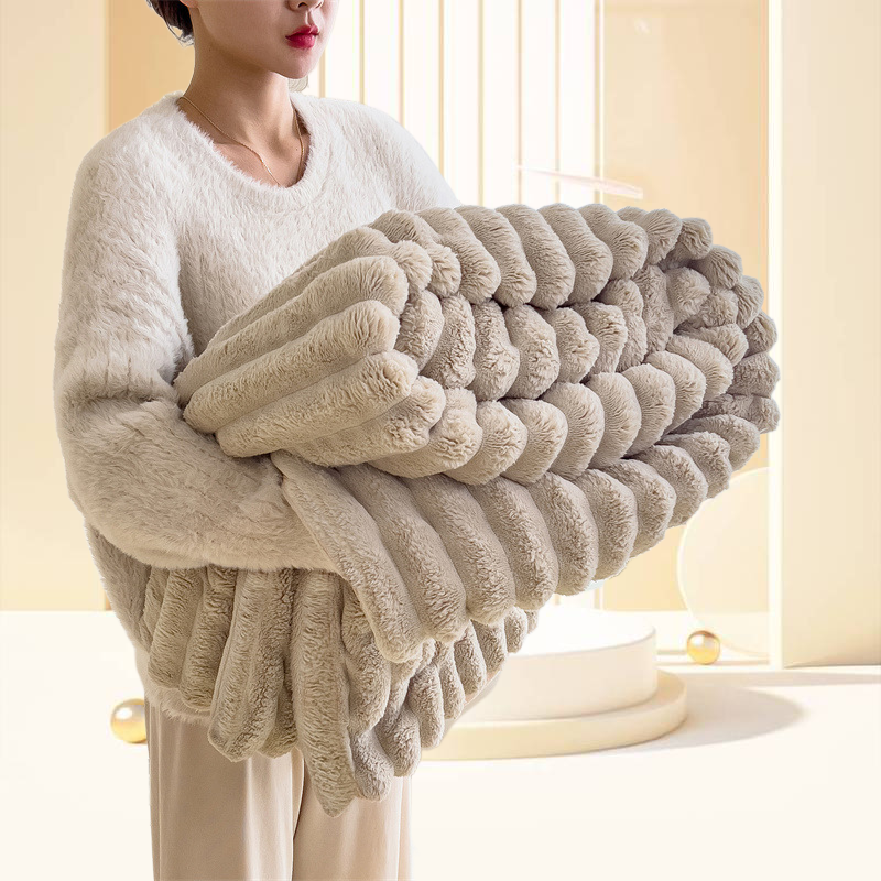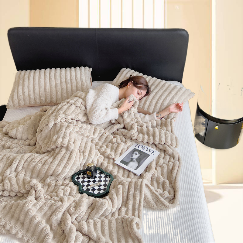 Hot Sale Latest Design King Size Luxury Rabbit Plush 100% Polyester Eco-friendly Thickened Blanket Winter Bedroom Wholesale