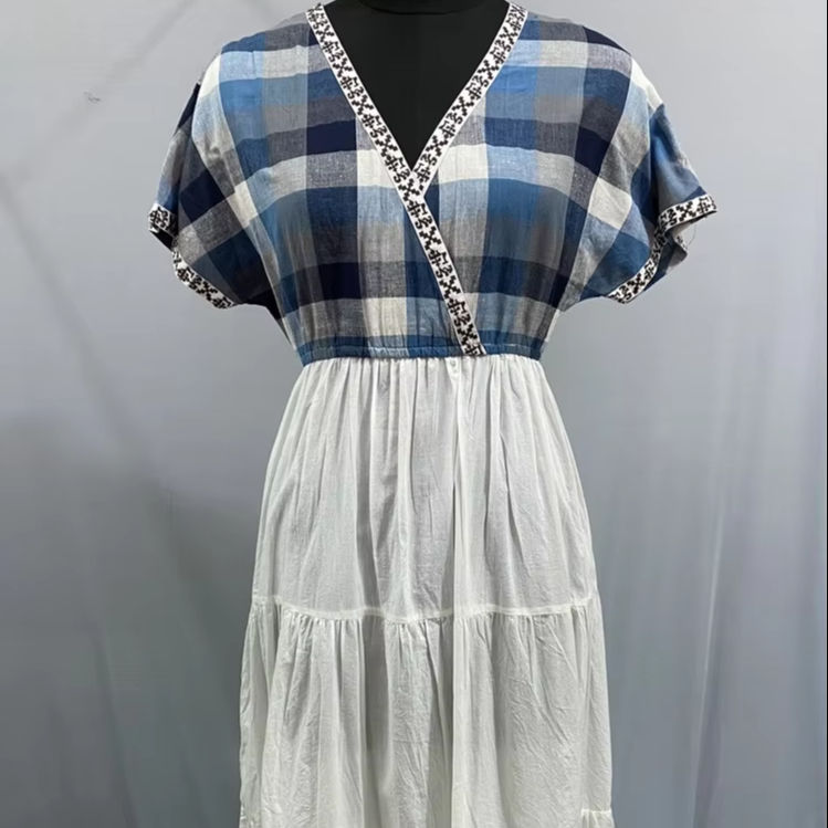 Hot Sale Latest Western Fashion Long Cotton Linen Dresses Puff Sleeve Waist v Neck Floral Printed Maxi Dresses Korean Dresses