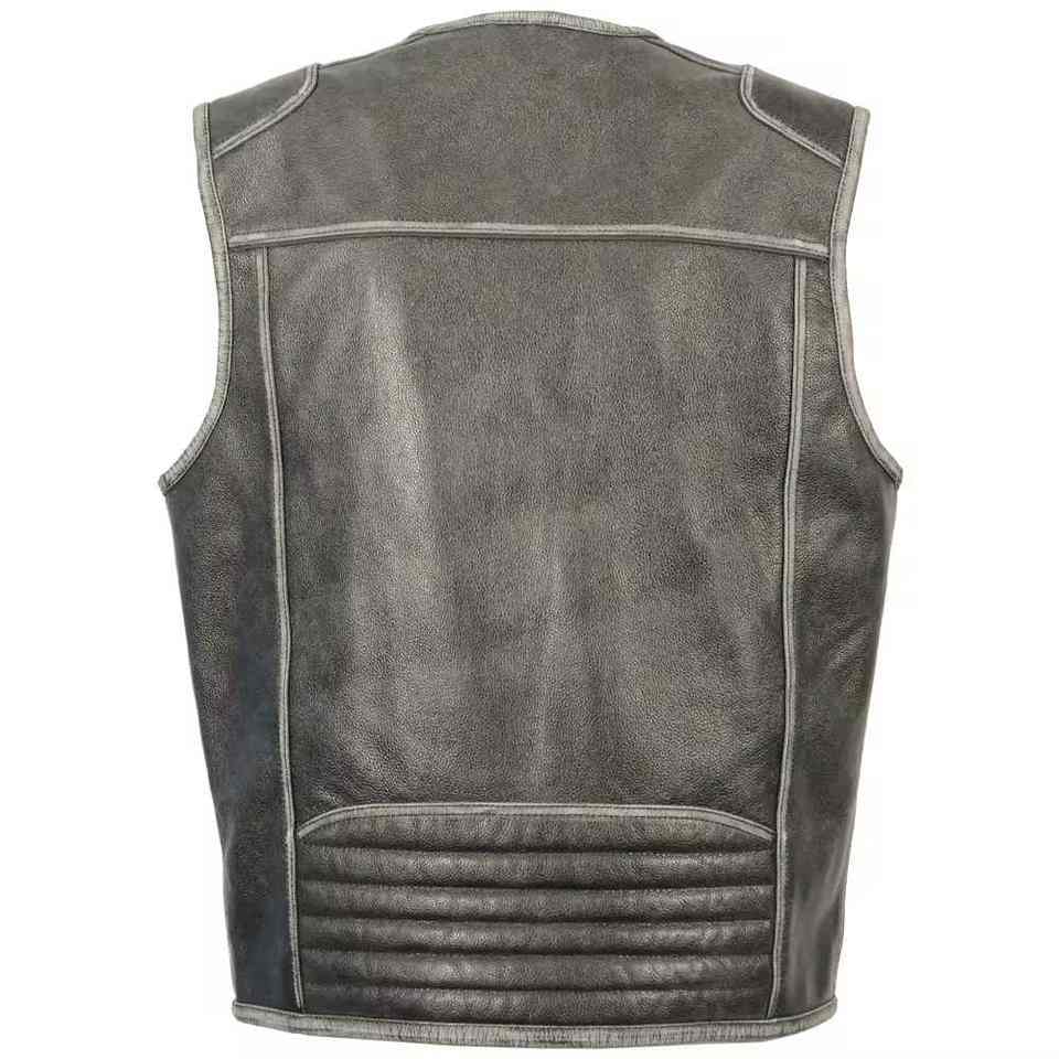 Hot Sale Leather Motorcycle Vest for Men Black Classic Vintage Comfortable Club Riding Biker Vests With Multi Pockets
