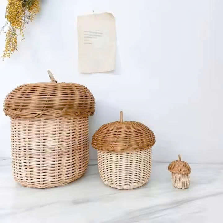 Hot Sale Lovely Mushroom Rattan Basket for Kids, Wicker Bag Children Toys Wholesale, Lovely Doll House