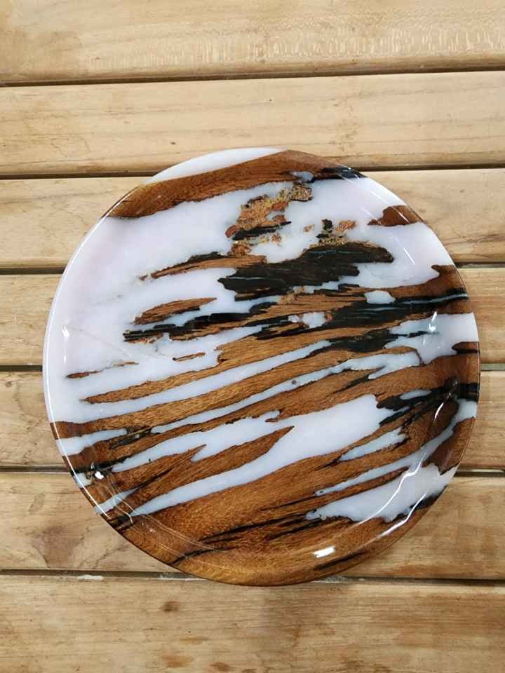 Hot Sale Luxurious Custom Plate Kitchenware Household Vintage Craft Solid Resin and Teak Branch Recycled Reclaimed Wood Plates