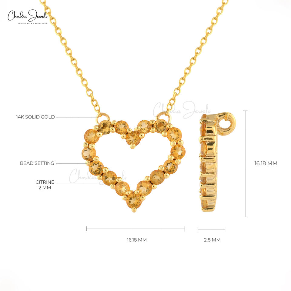 Hot Sale Luxury 14K Gold 0.80 TCW Natural Citrine Stone Pendant Necklace Fine Jewelry Heart Shape Design for Engagement Wedding