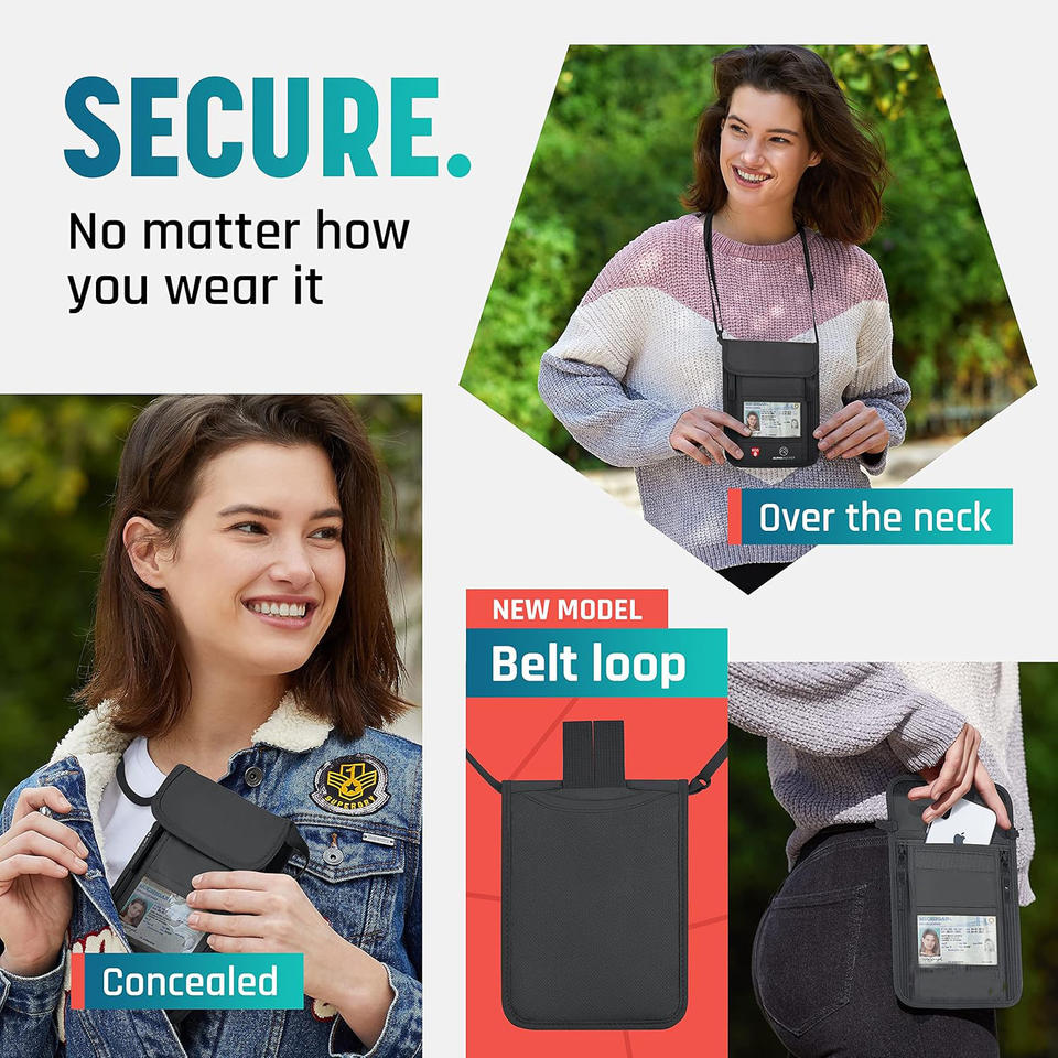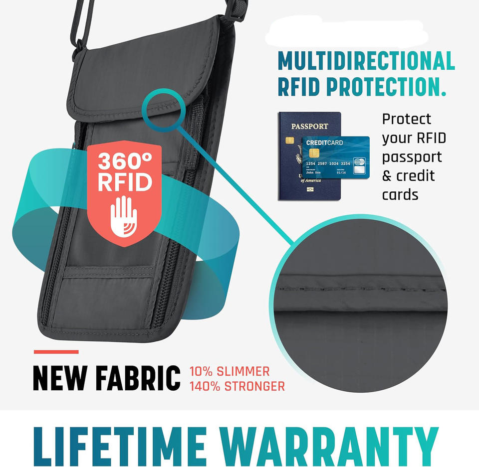 Hot Sale Luxury Custom Logo Waterproof Super Slim Pouch RFID Blocking Zipper Closure Nylon Fabric Passport Holder Travel Neck