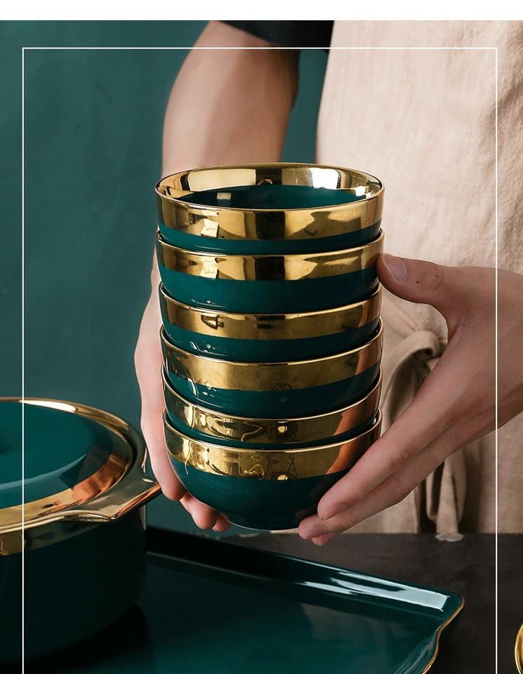 Hot Sale Luxury Eco-Friendly Round Porcelain Ceramic Gold Dinnerware Plates Wholesale Household Color Glaze Dinnerware Sets