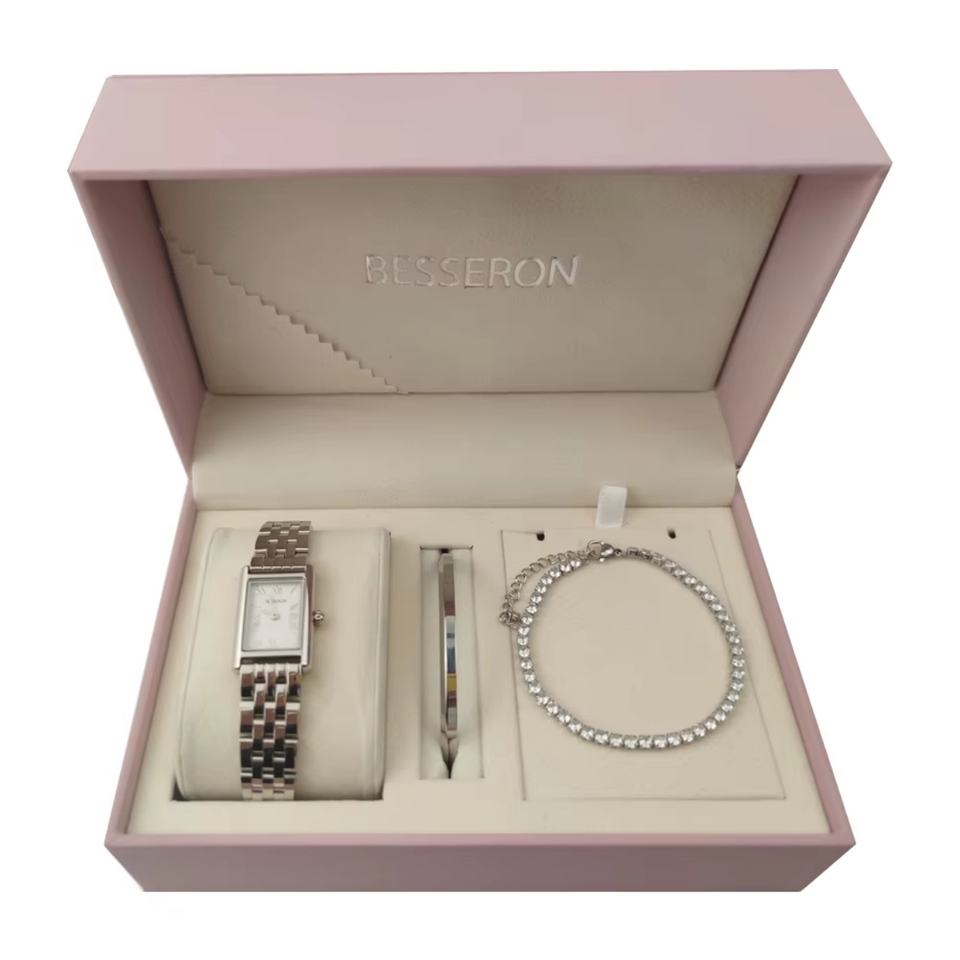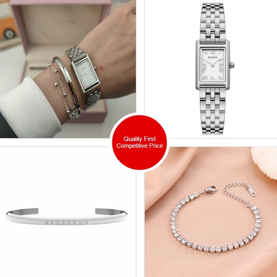 Hot Sale Luxury Fashion Charm Zircon Stainless Steel Quartz Watch Set with Pointer Dial Women's Jewelry 3 Piece Set