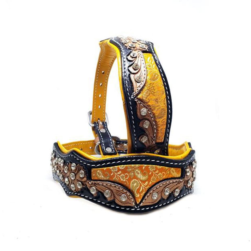 Product name:Yellow & Brown Bling Padded Dog Collar