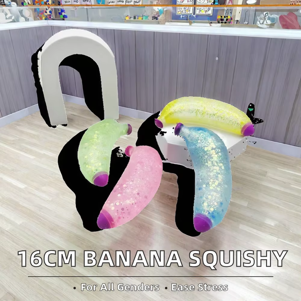 Hot Sale Maltose 16cm Banana Squishy Toy TPR Portable Stress Relief Squeeze Gift for Kids and Adults TPR Portable Stress Relief