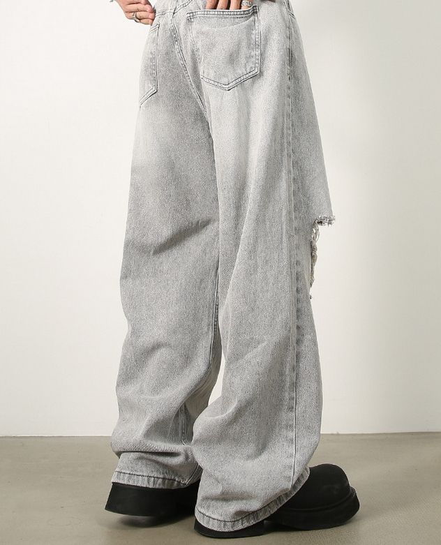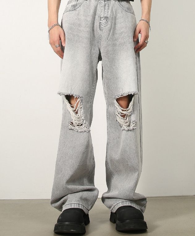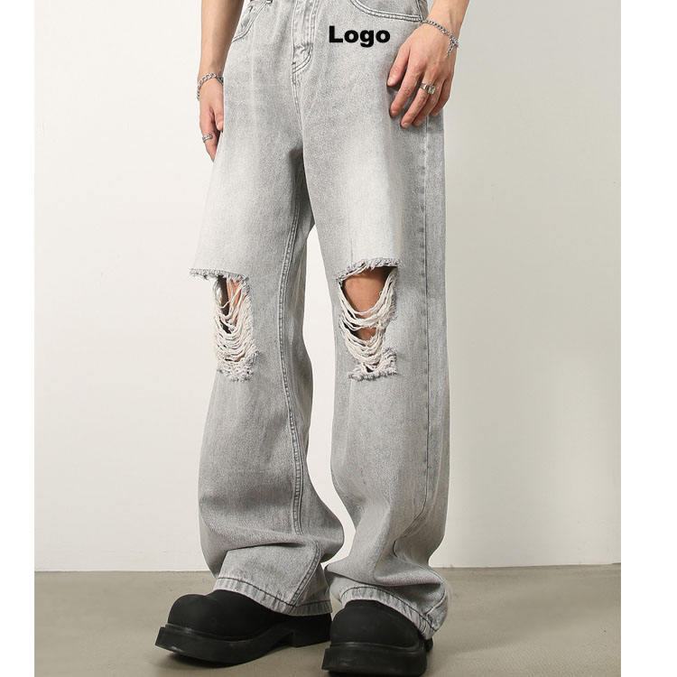 Hot Sale Men Jeans Fashion Wholesale Custom Design Denim 100% Cotton Washed Straight Wide Leg Plus Size Mens Jeans with Hole
