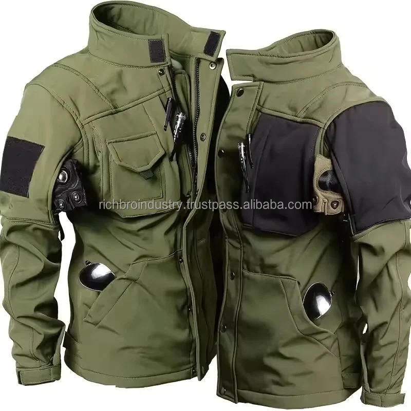 Hot Sale Men's Cordura Soft Shell Jacket Fleece Lined Waterproof Windproof Warm Outdoor Sportswear Coat Zipper Multiple Pockets