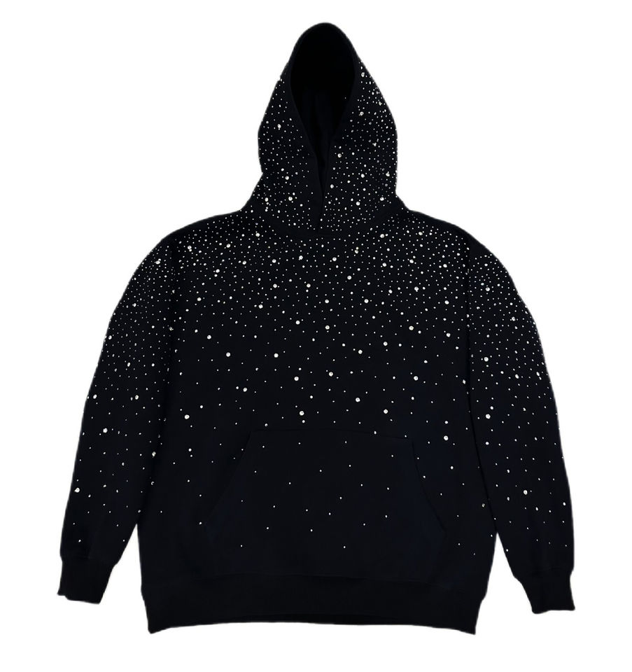 Hot Sale Men's Pullover Hoodies Sun Faded Rhinestone Design 100% Heavyweight Cotton 500 GSM Fabric Customizable Black Hooded