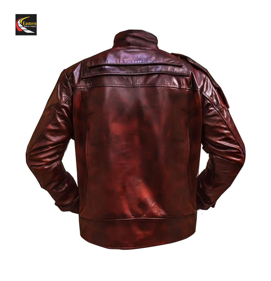 Hot Sale Mens Star Halloween Cosplay Coat Wholesale Distressed Maroon Faux Leather Jacket