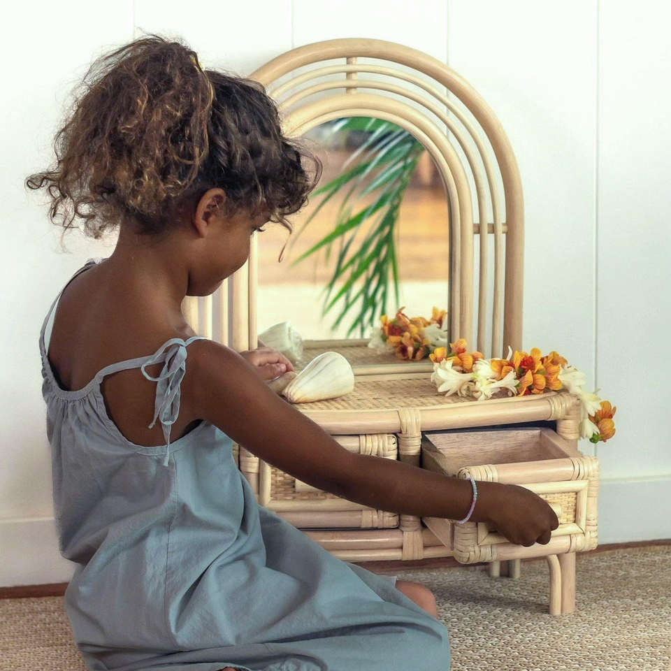 Hot Sale Minimalist Decor Bamboo and Rattan Wholesale Dressing Table for Children Sitting on Ground Safe for Baby's Health