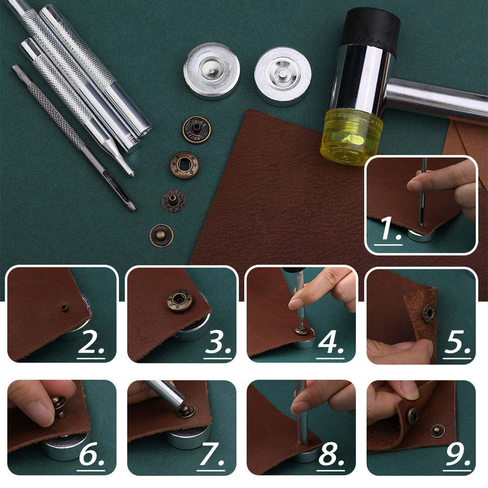 Hot Sale Mixed Colors Leather Snap Fasteners Kit with Install Tools Including Leather Rivets for Garment Accessories