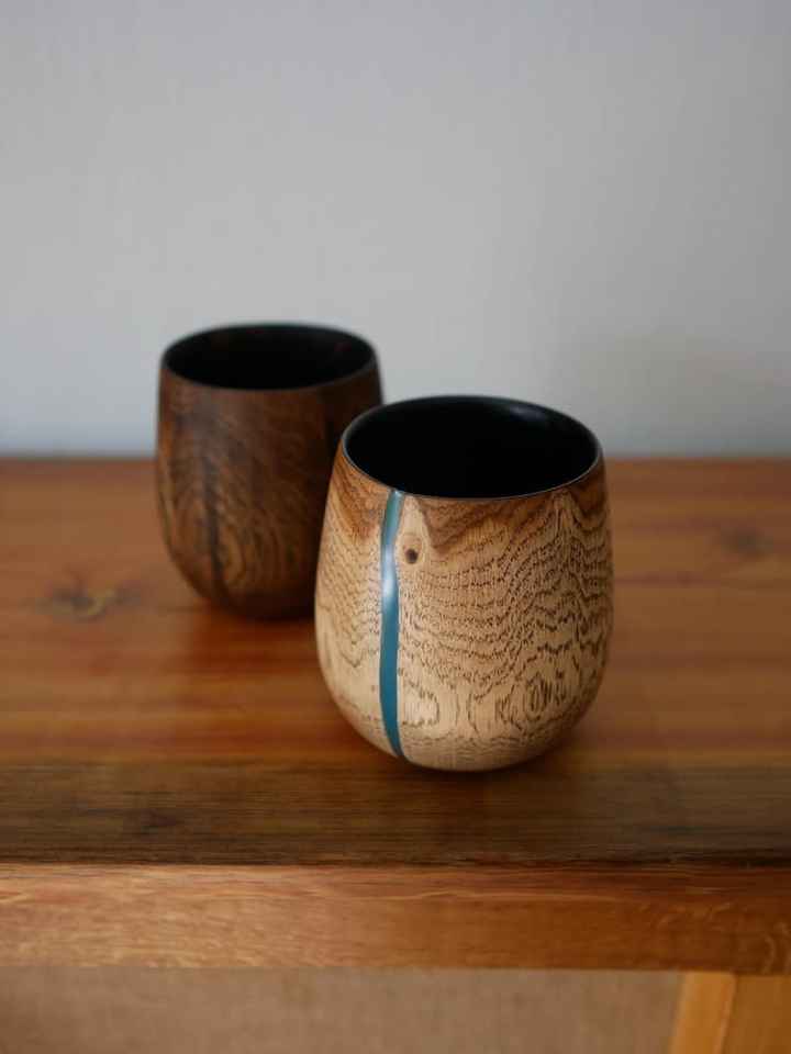 Hot Sale Modern Handmade Eco-Friendly Japanese Date Wood Coffee Cups Set of Three Solid Wood Bowls Cups Handle Milk Cups Party