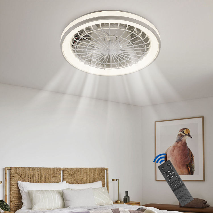 Hot Sale Modern Indoor Home Dc All Copper 16W Motor 7 Blades Round Fan Light Stepless Dimming LED Ceiling Fan With Lamp