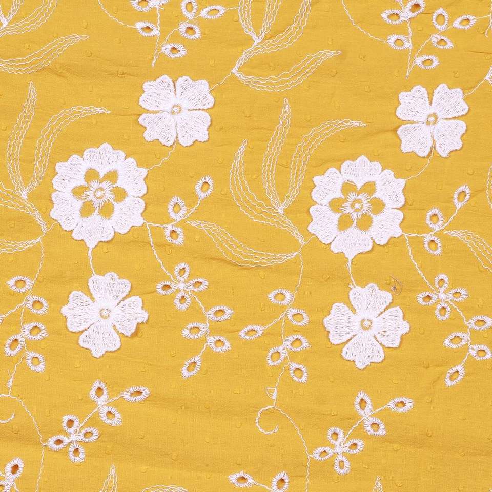 Hot Sale Mustard Yellow Cotton Woven Breathable Lightweight 3D Floral Fabric for Apparel & Fashion Garments at Factory Price
