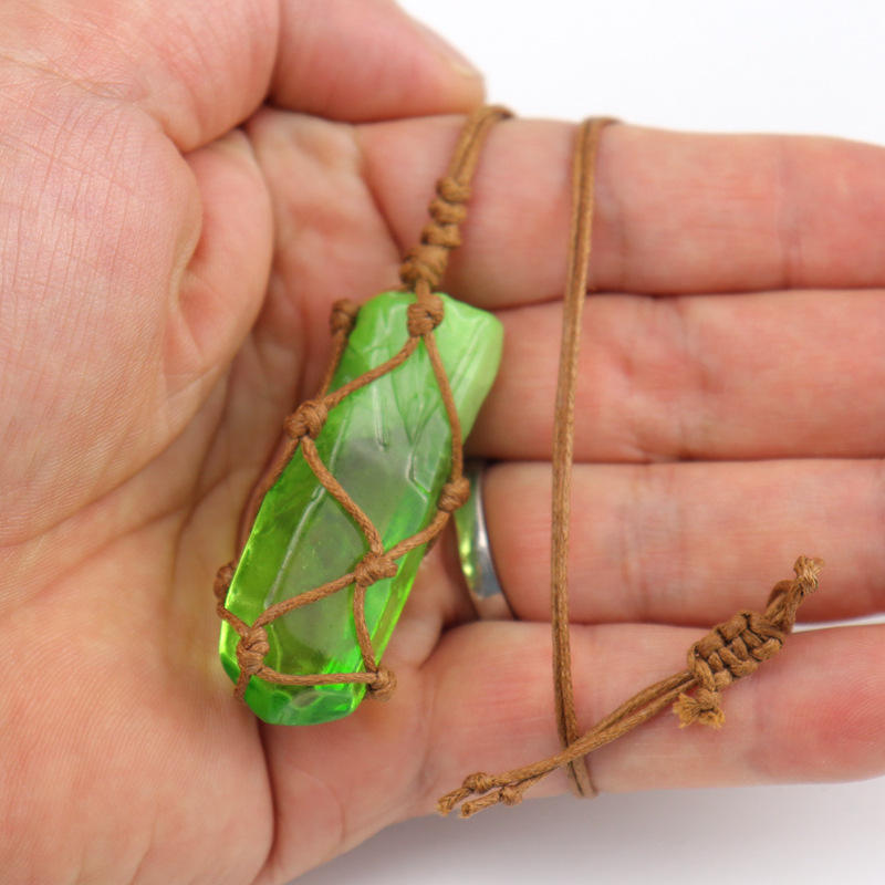 Hot Sale Necklace Pendant New Handmade Woven Natural Stone Crystal Column Mesh Pocket Adjustable Laser Printed Decor Gift