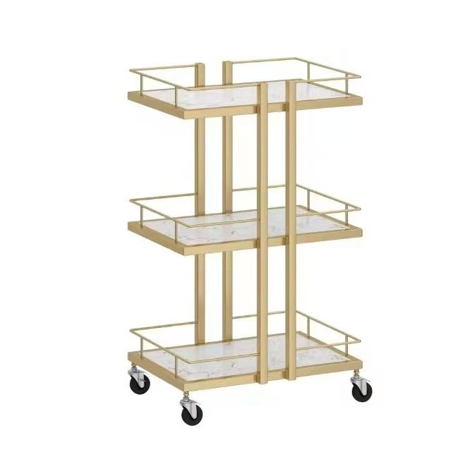 Hot Sale New Design Gold Salon Tools Cart Hairdressing Hand Cart With Wheels Metal for Beauty Salon Trolley Nail Bar SPA
