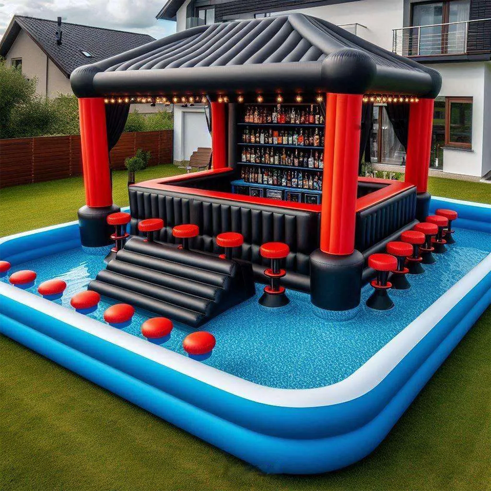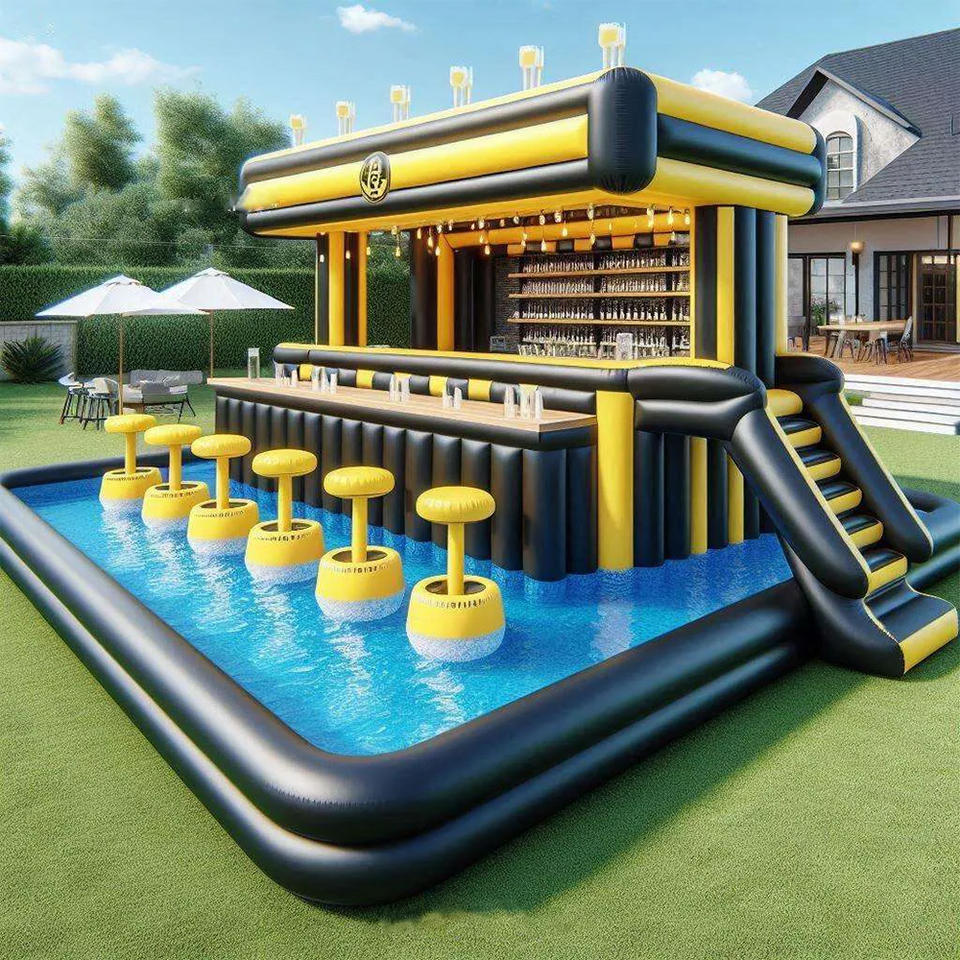 Hot Sale New Design Inflatable Floating Water Pool Bars Backyard Party Leisure Platform with Seat Sets