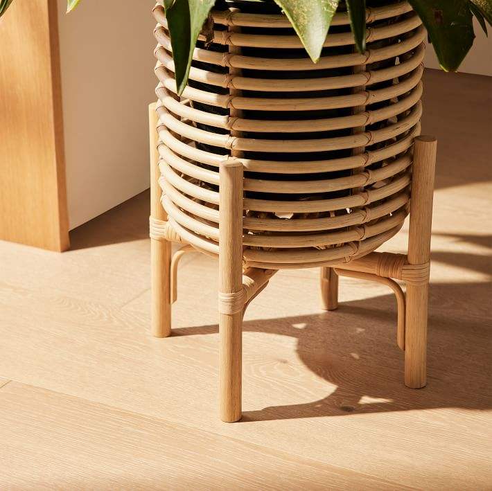 Hot Sale New Handwoven Rattan Pot Plant Holder with Stand Minimalistic Custom Home Gardening Accessories
