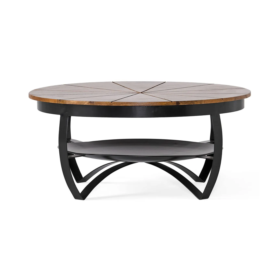 Hot Sale New Solid Mango Wood Round Design Tables Modern Coffee Table With Black Metal Base Cross Leg Design for Living Room Use