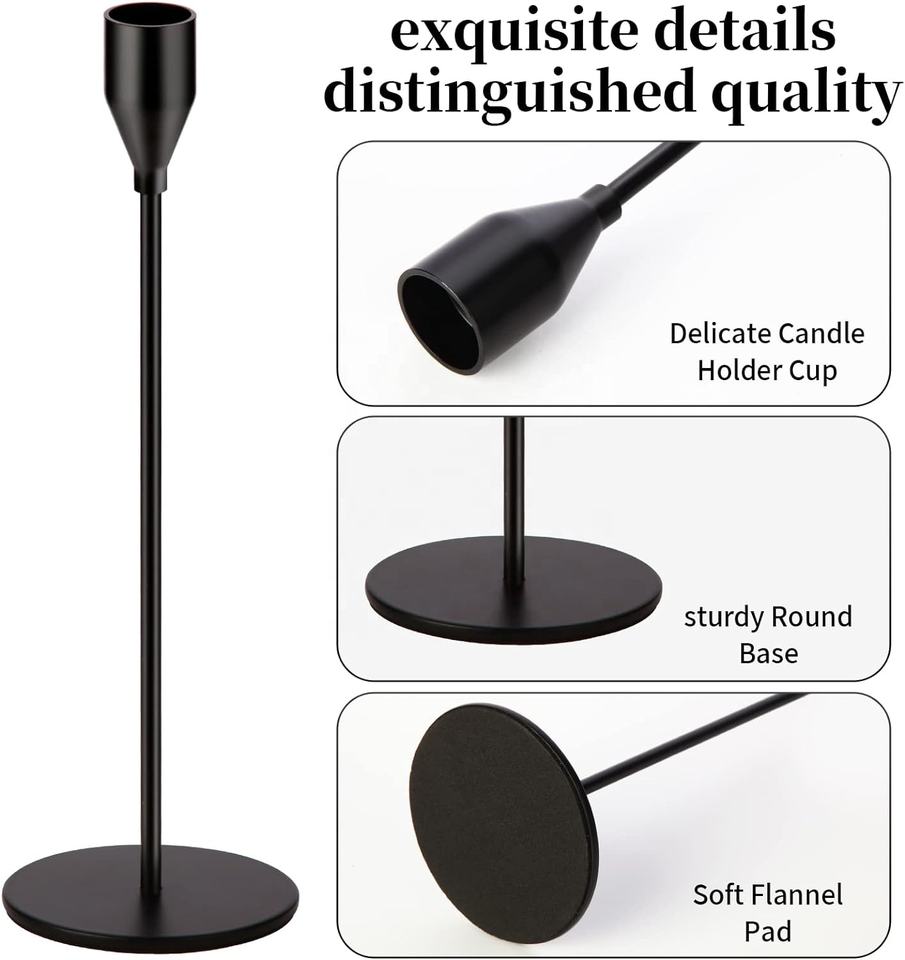 Hot Sale New ZHUODI European Style Pure Black Smooth Bottom Metal Handmade Candlestick Holder for Valentine's Day Home