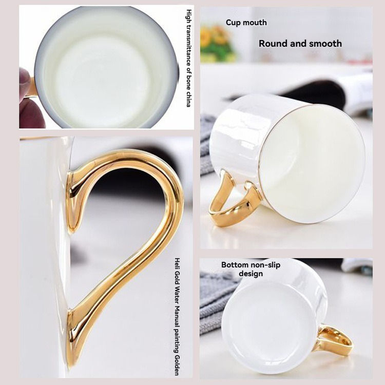 Hot Sale Nordic Bone China Eco-Friendly Home Coffee & Water Cup Creative Gold Handle 250-480ml Office Use