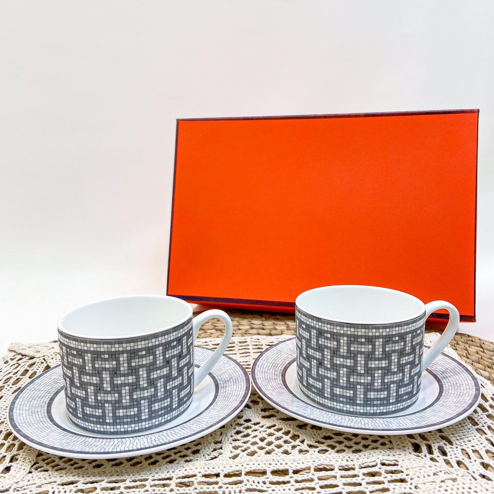 Hot Sale Nordic Luxury Grey Vertical Pattern Porcelain Tea Cup & Saucer Set