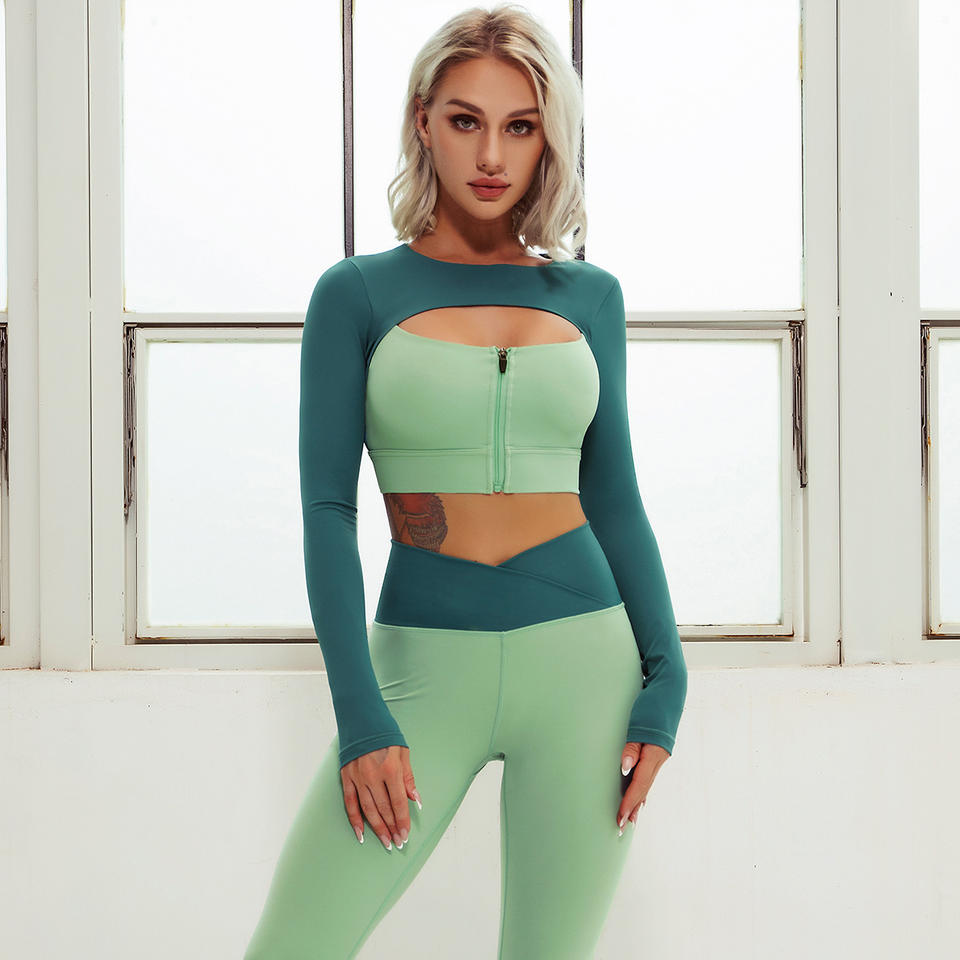 Hot Sale Nude Feeling Active Wear Set Front Zipper Long Sleeve Yoga Top and Legging 2 Pieces Athletic Wear