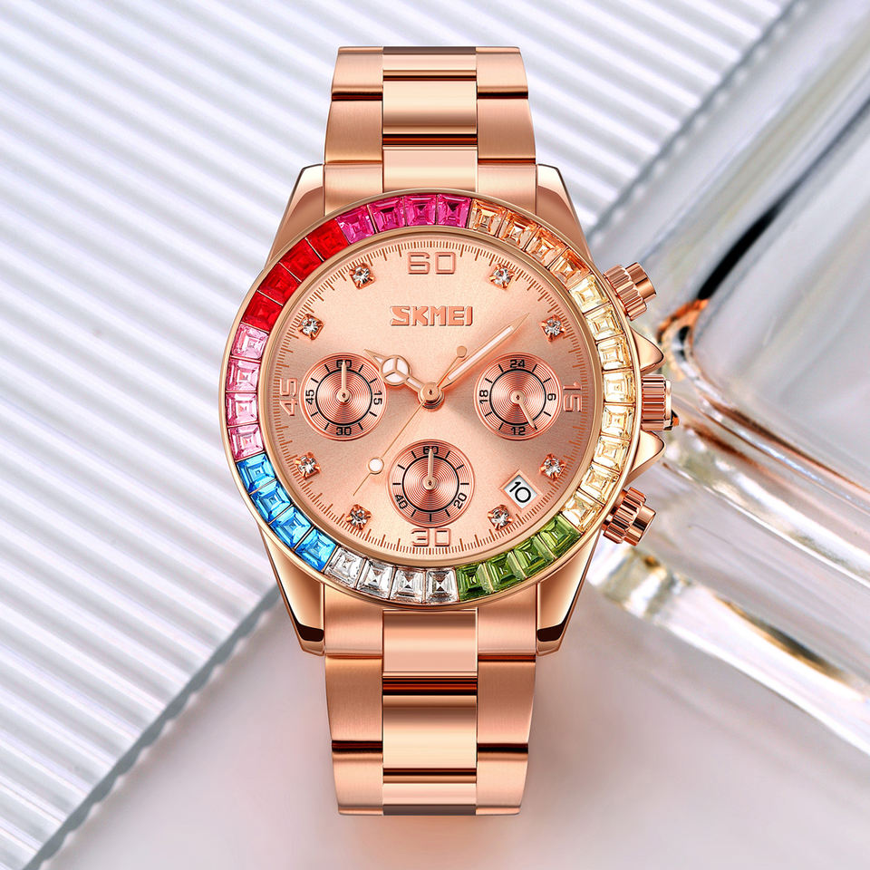 Hot Sale OEM/ODM Custom Logo Fashion Luxury Quartz Movement Stainless Steel Diamond Glass Dial Women Waterproof Watch Wholesale