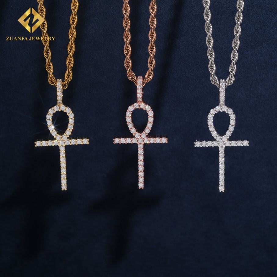 Hot Sale Pass Diamond Tester Iced Out Fire Pendant VVS Moissanite Cross Hip Hop Charm Pendant 925 Sterling Silver